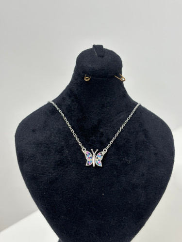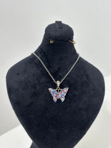 گردنبند نقره پروانه رنگی زنانه ۹۷۹