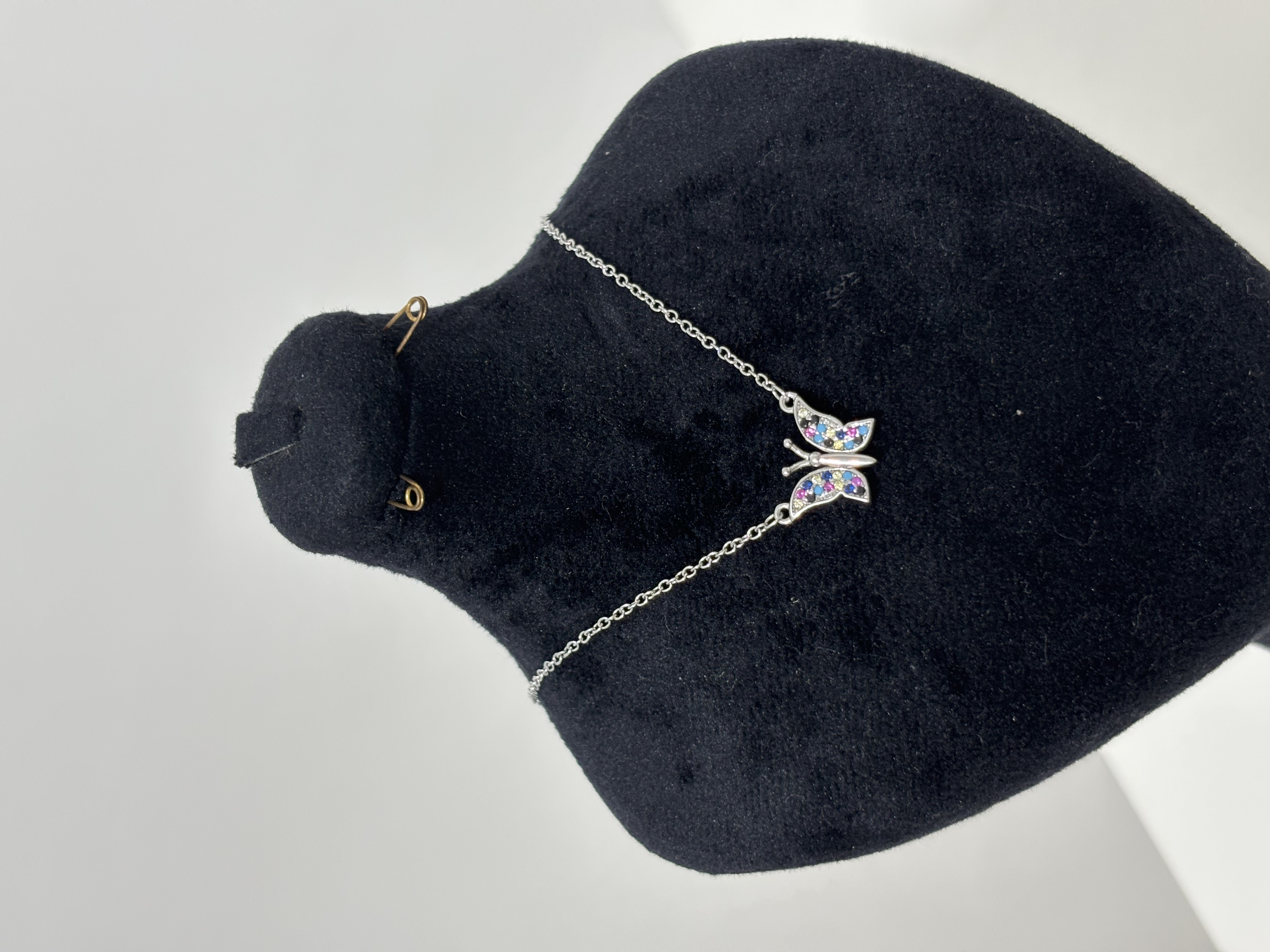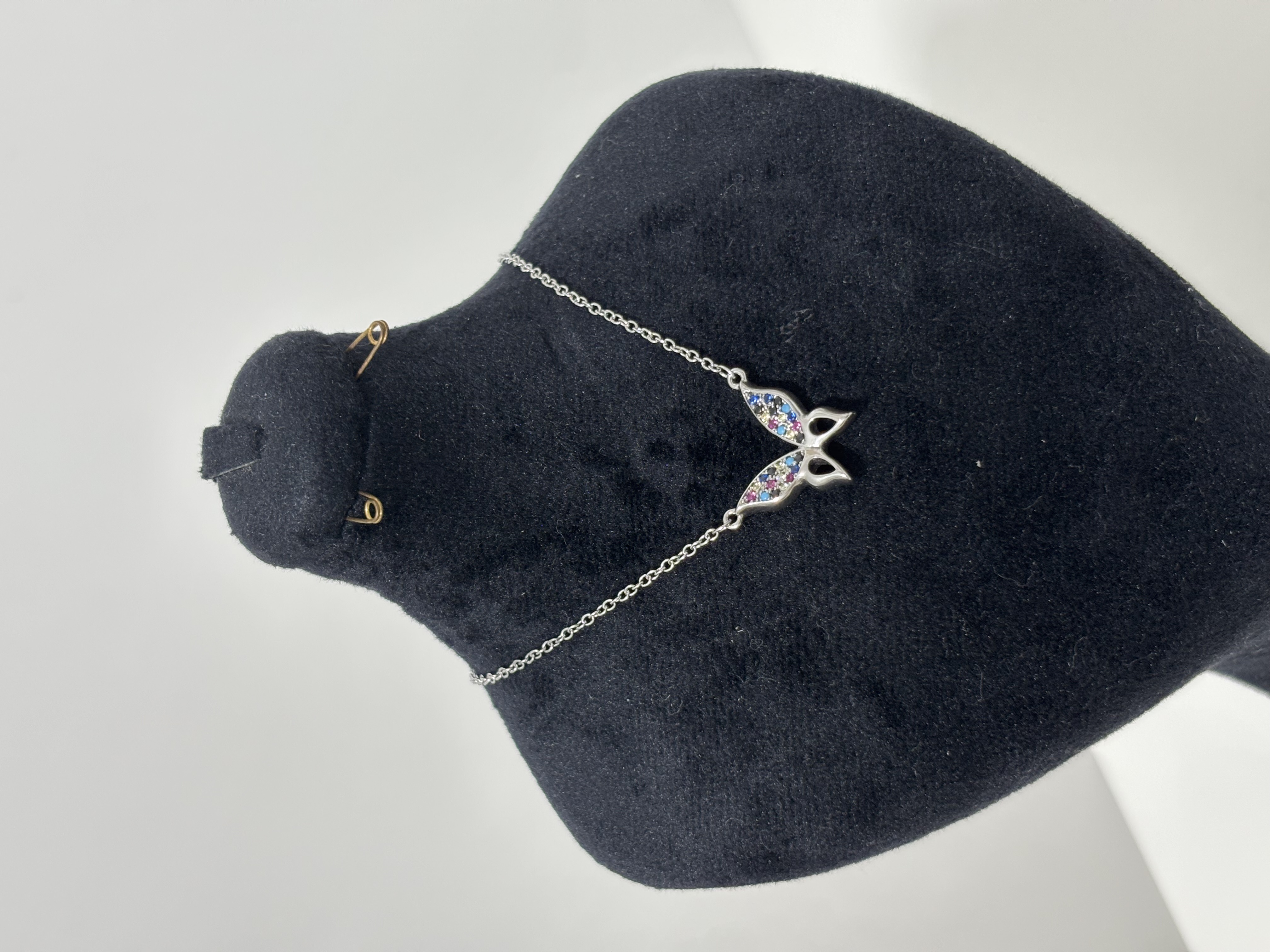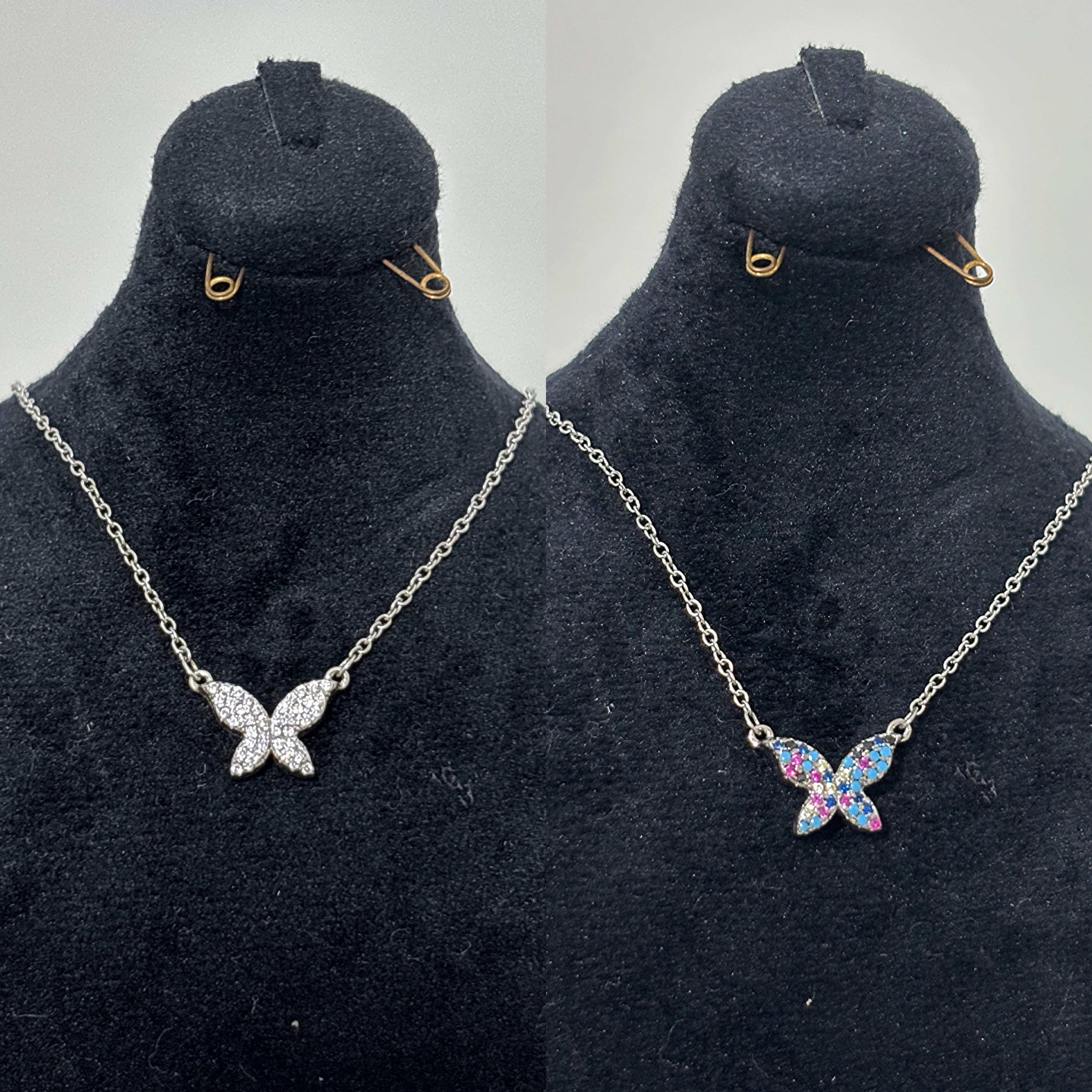 گردنبند نقره پروانه رنگی زنانه ۹۷۹
