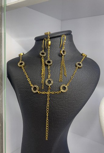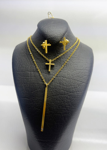 دستبند ونکلیف سفید و طلایی استیل۶۹۴