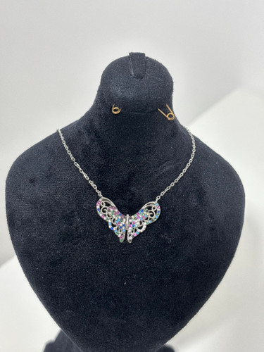 گردنبند نقره پروانه رنگی زنانه ۹۷۹