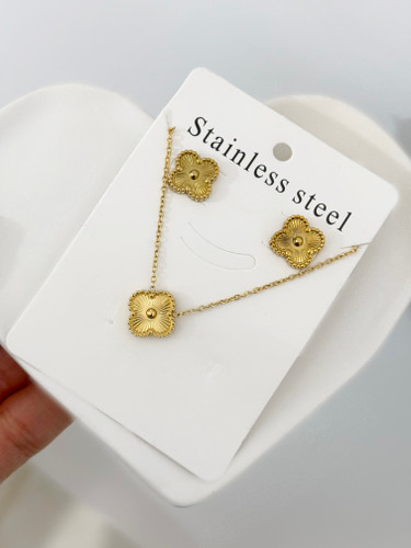 ناموجودست گردنبند گوشواره ونکلیف تراش دار طلایی ۷۰۴