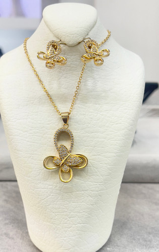 ست گردنبند گوشواره طرح پروانه طلایی نگینی