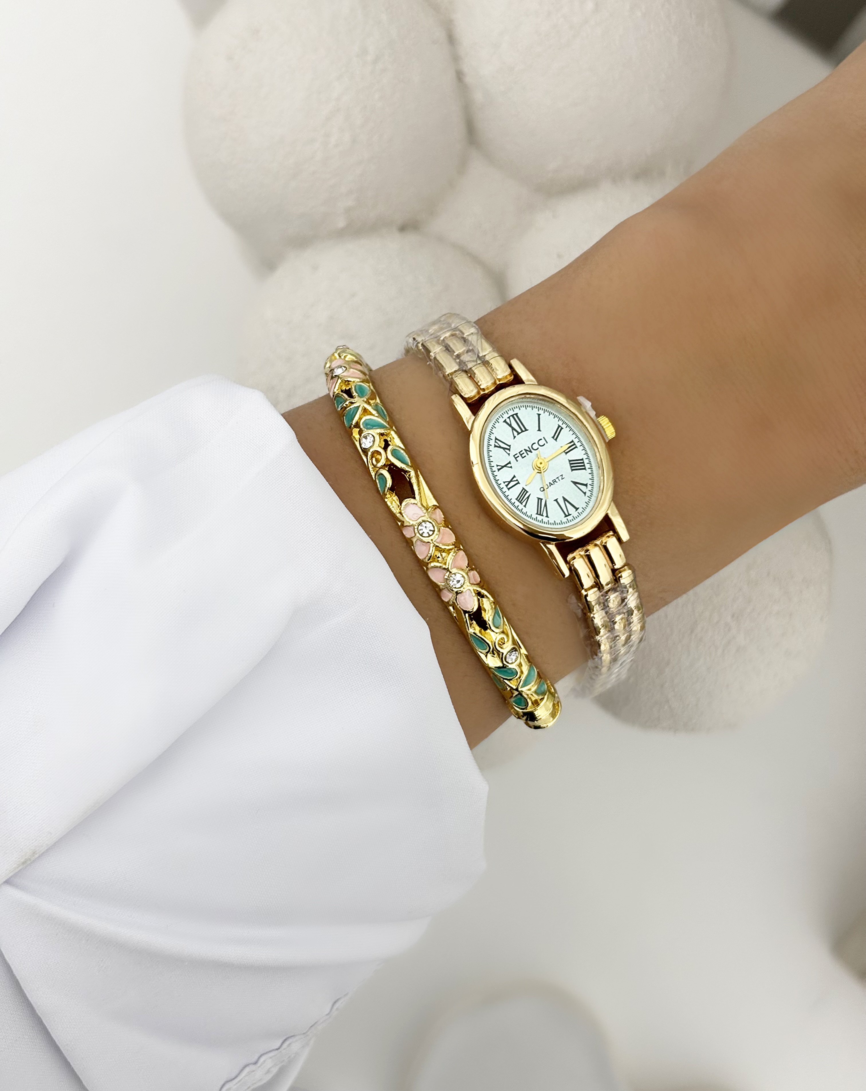 ناموجودساعت طلایی زنانه فلورا دورنگین ۶۷۴
