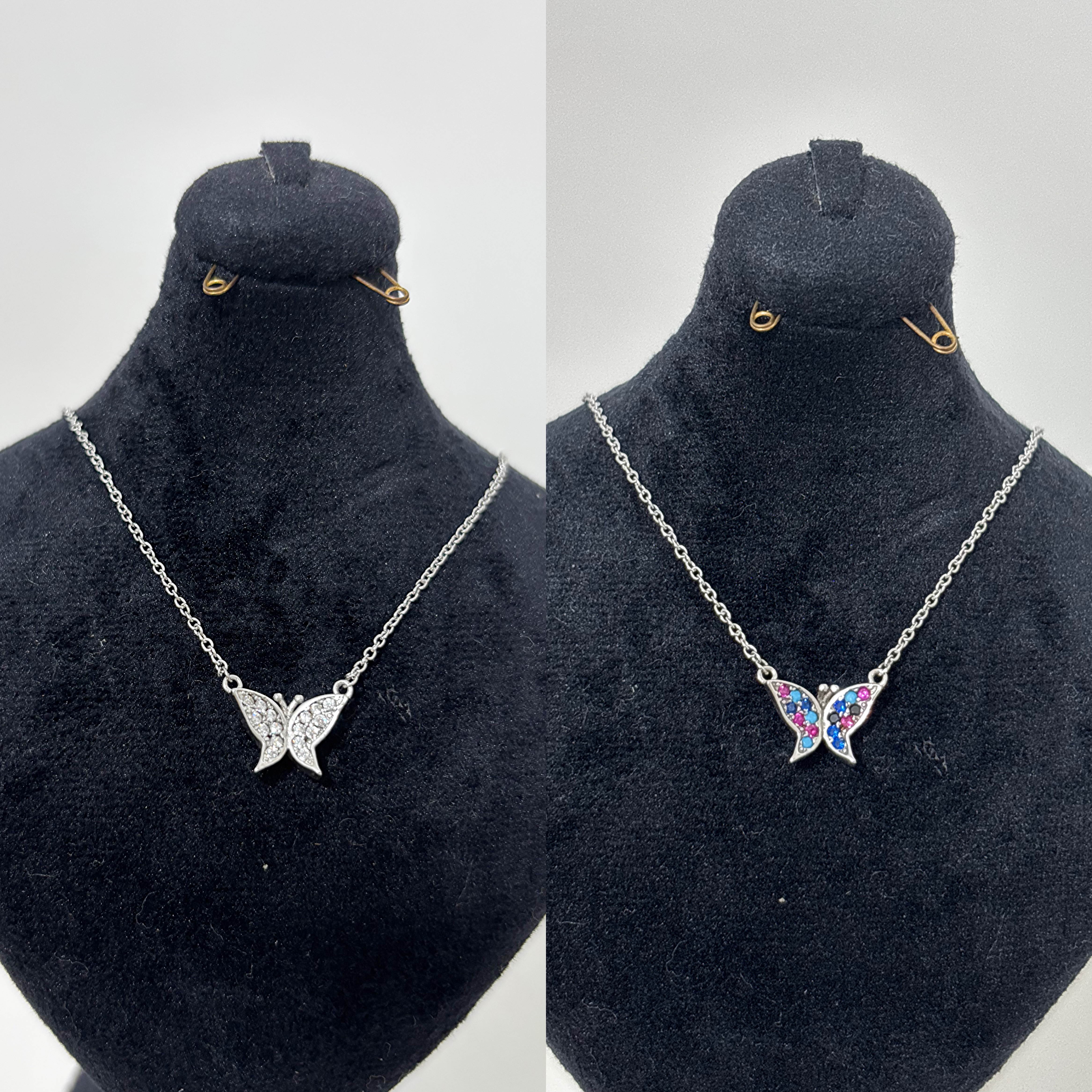 گردنبند نقره دخترانه طرح پروانه نگین رنگی