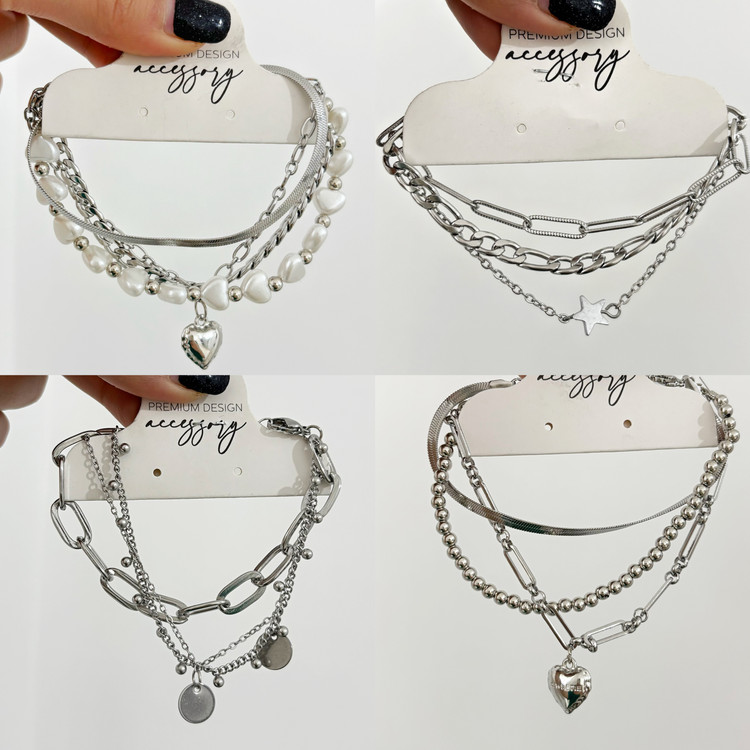 ✨پک دستبند استیل رنگ سیلور دخترانه