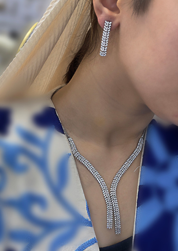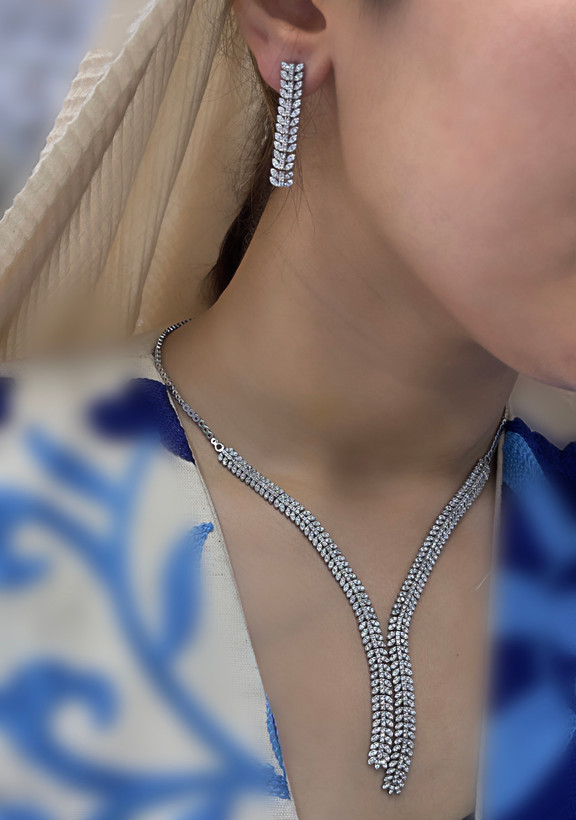 سرویس بی نظیر و خاص که درخشندگیش از نزدیک مبهوتتون میکنه ✅ ارسال با فاکتور معتبر به همراه مهر فروشگاه✅ تماما نقره ی 925 ✅ نگین های اتمی تراش برلیان✅ دارای ابکاری رودیوم بوده که باعث جلا و درخشندگی میشود✅ بدون تغییر رنگ و ایجاد حساسیت✅ بهترین انتخاب عروس خانوم ها ، به جهت شباهت کم نظیر کار به سرویس های طلای موجود دربازار با قیمت مناسب✅