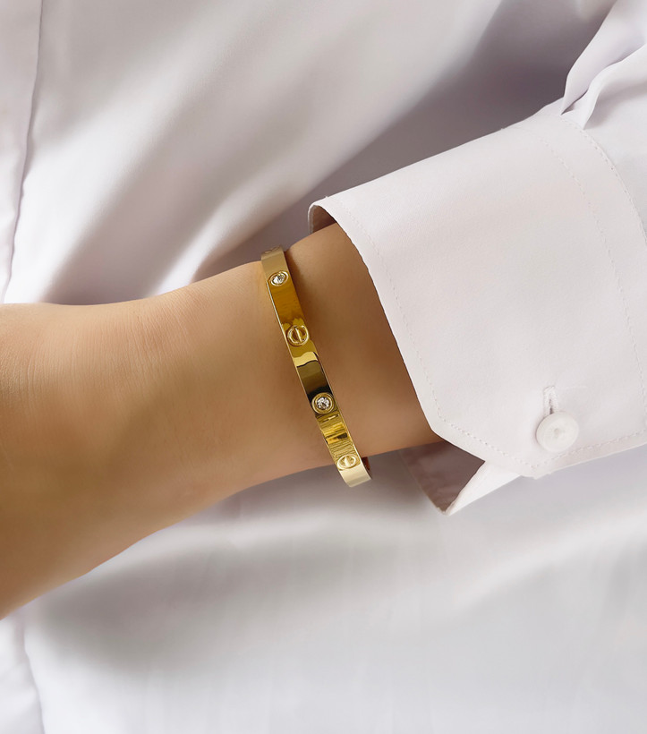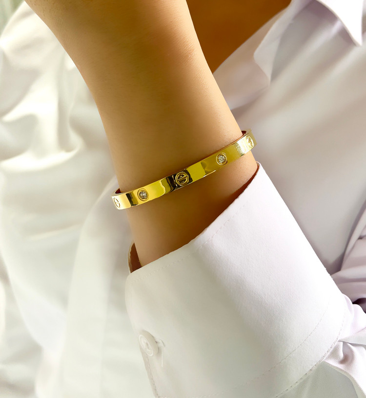 دستبند استیل کارتیه لاو دخترانه نگین دار