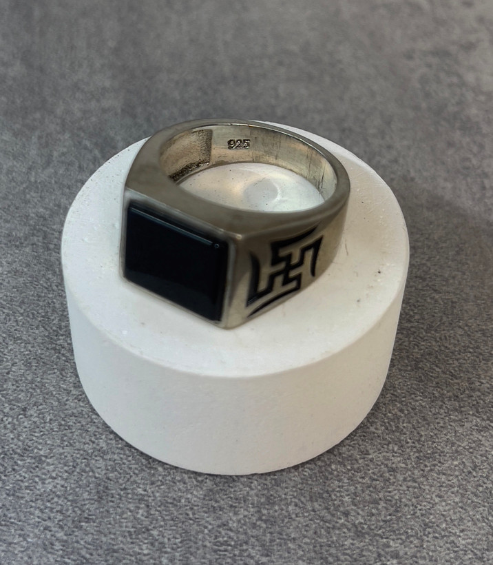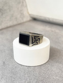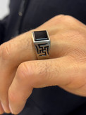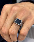 انگشتر نقره مردانه ساده با سنگ مربع عقیق مشکی