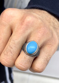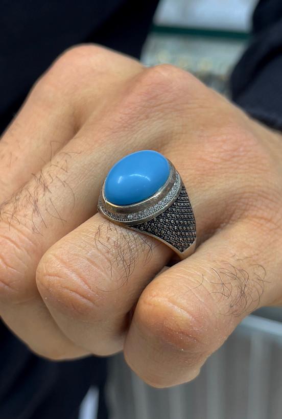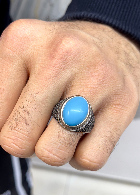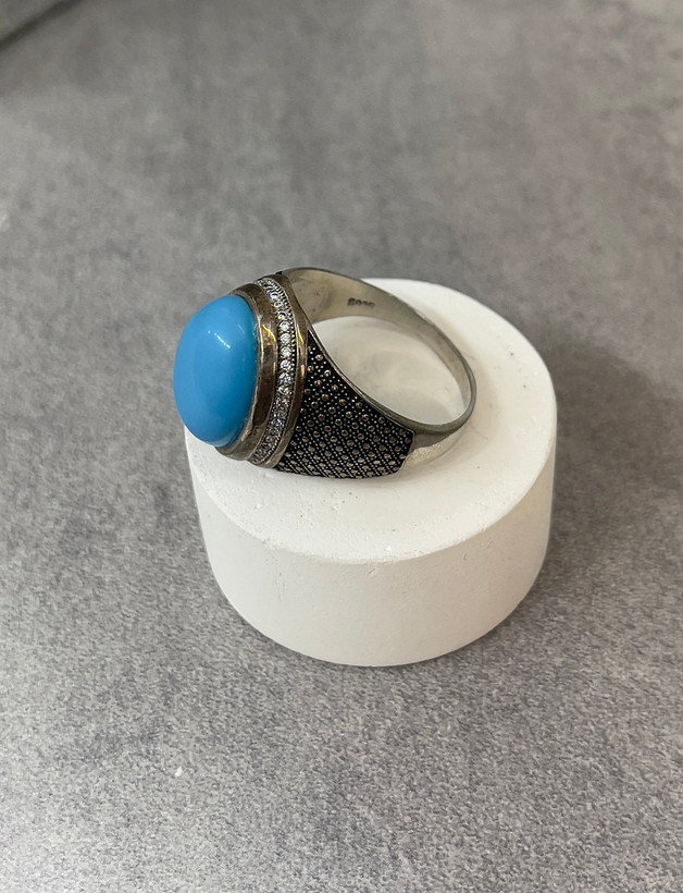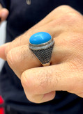 انگشتر نقره مردانه فیروزه با رکاب سیاه قلم