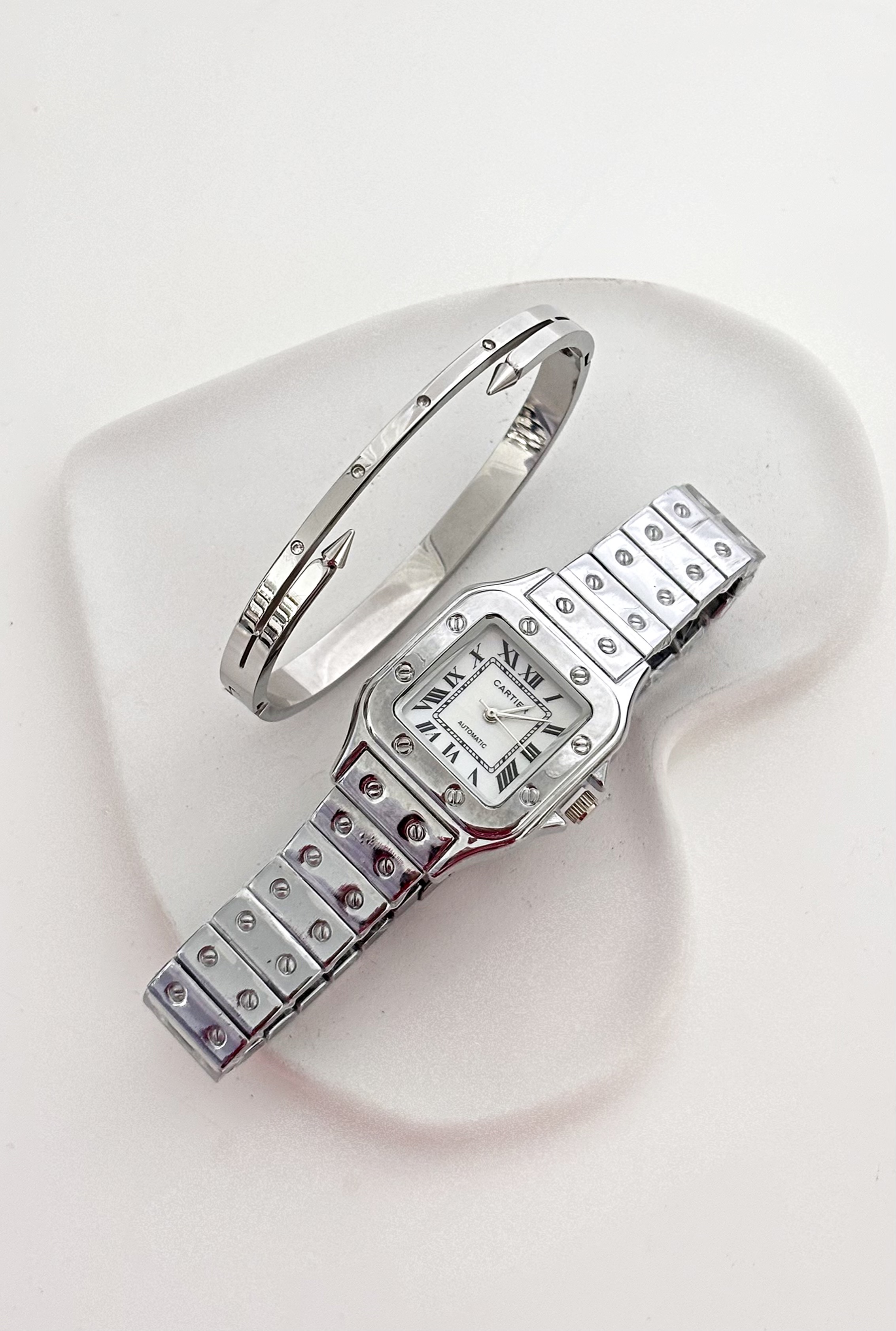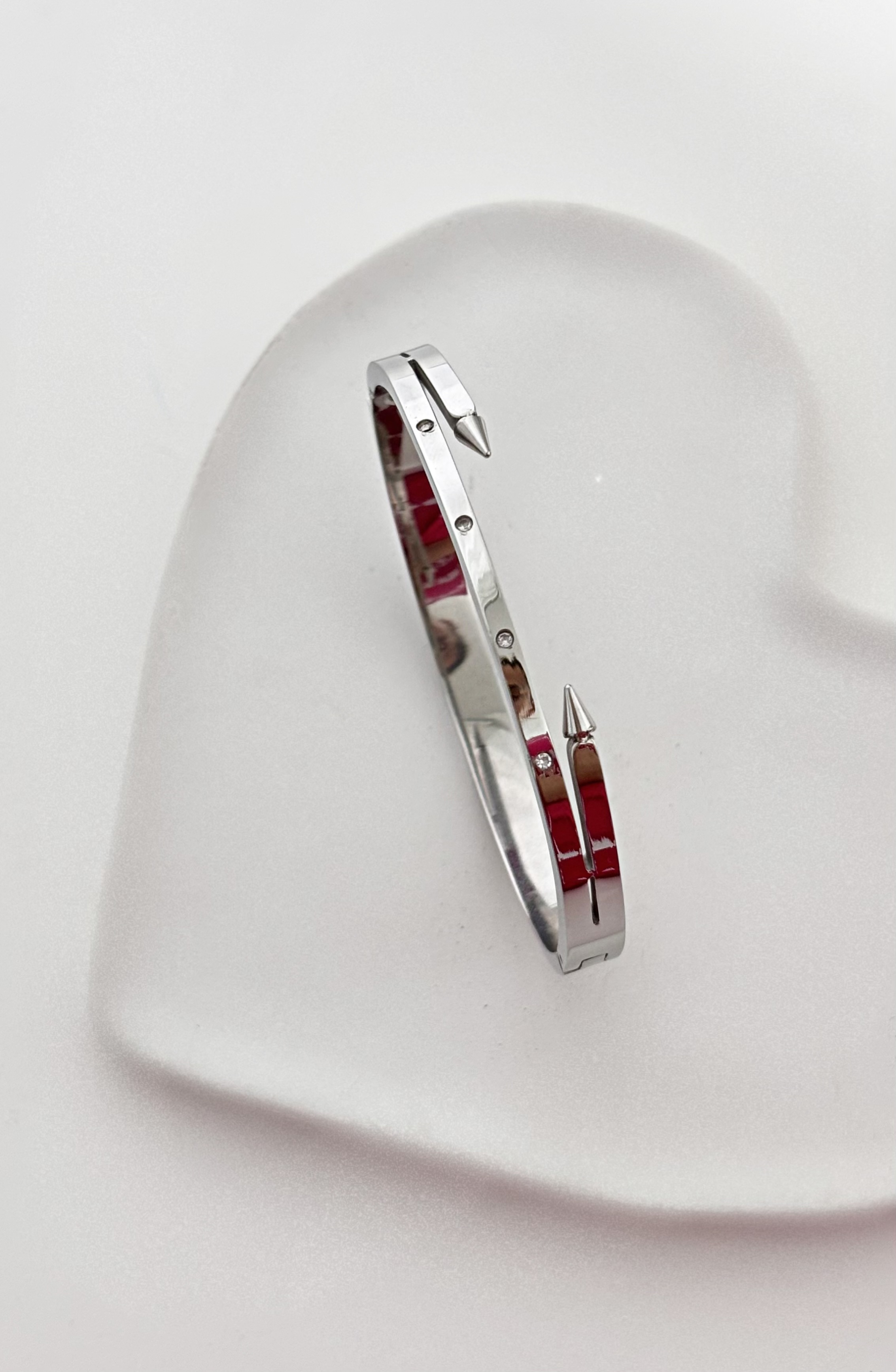 ✔️دستبند کارتیه باو زنانه استیل رنگ سیلور دارای قفل بازشو مناسب دور مچ ۱۵-۲۰ سانت