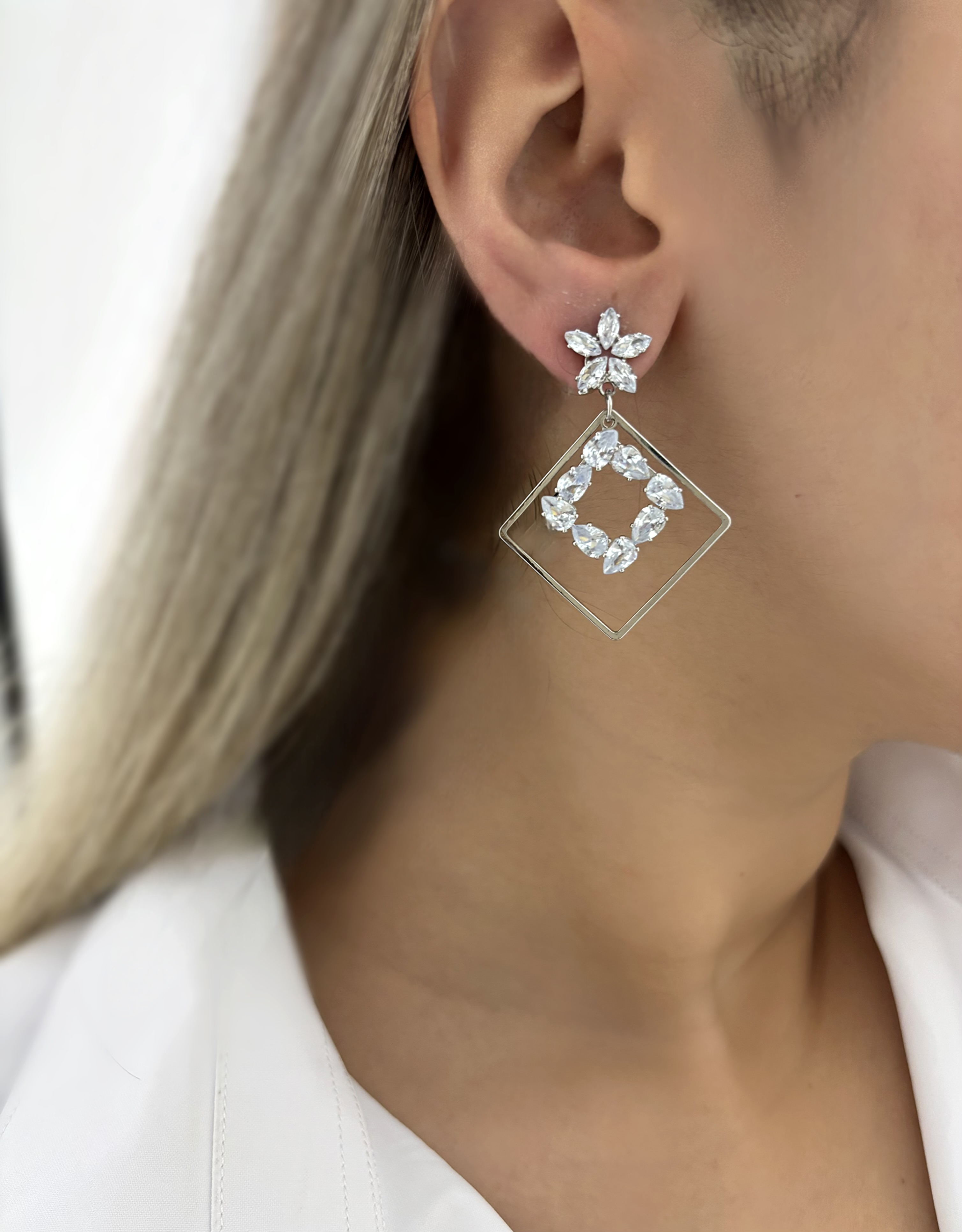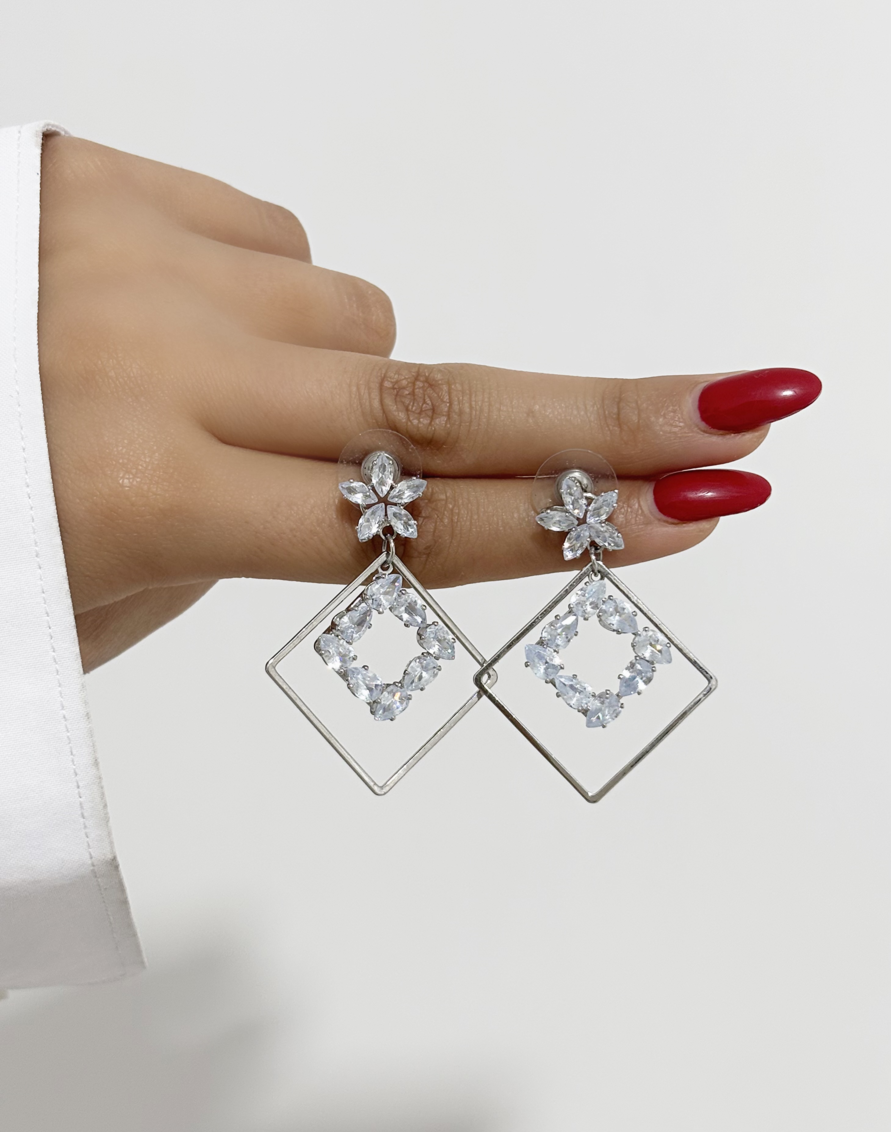 ✨گوشواره مجلسی آویزی زنانه با طراحی گل و لوزی نگیندار
