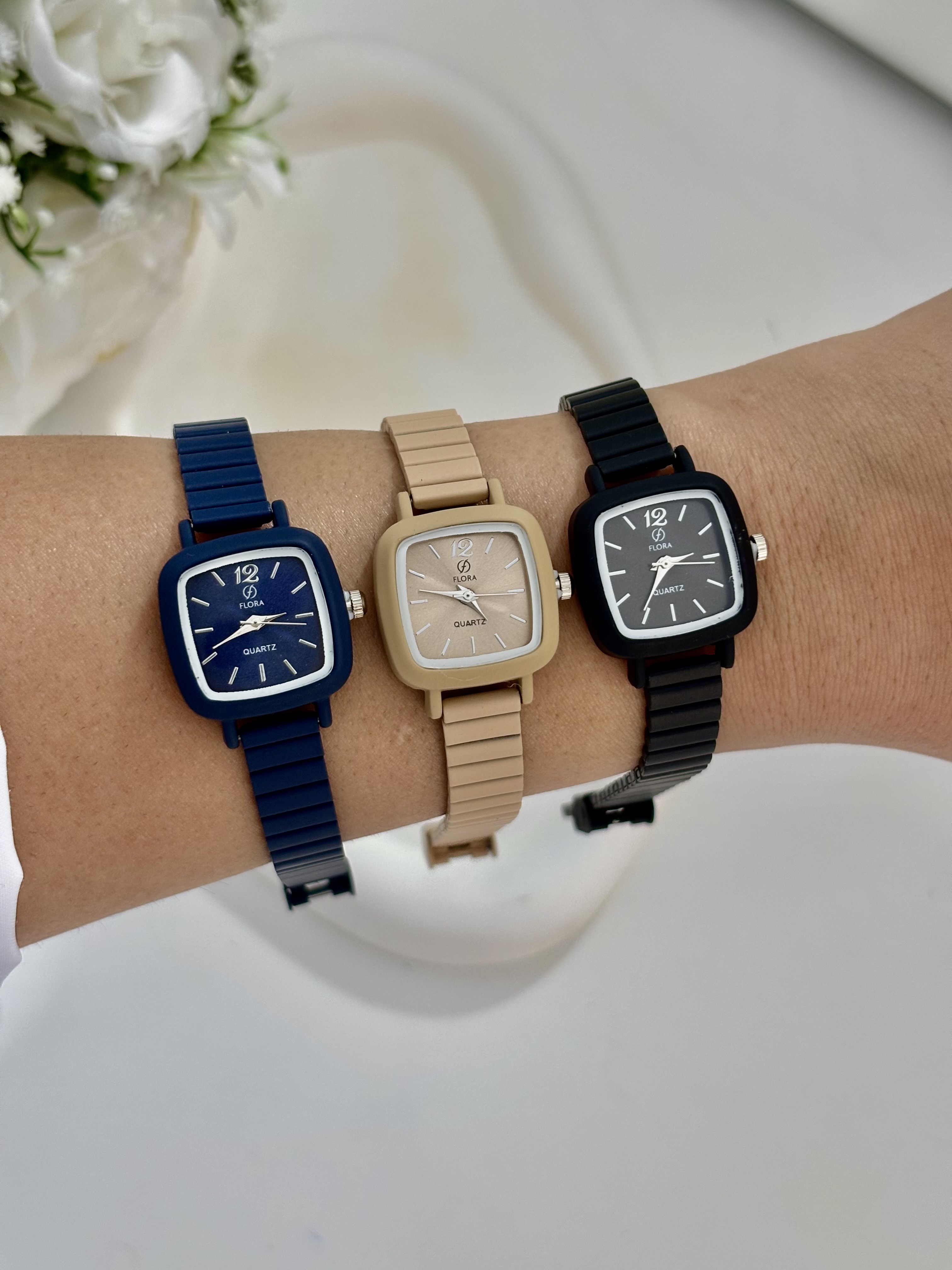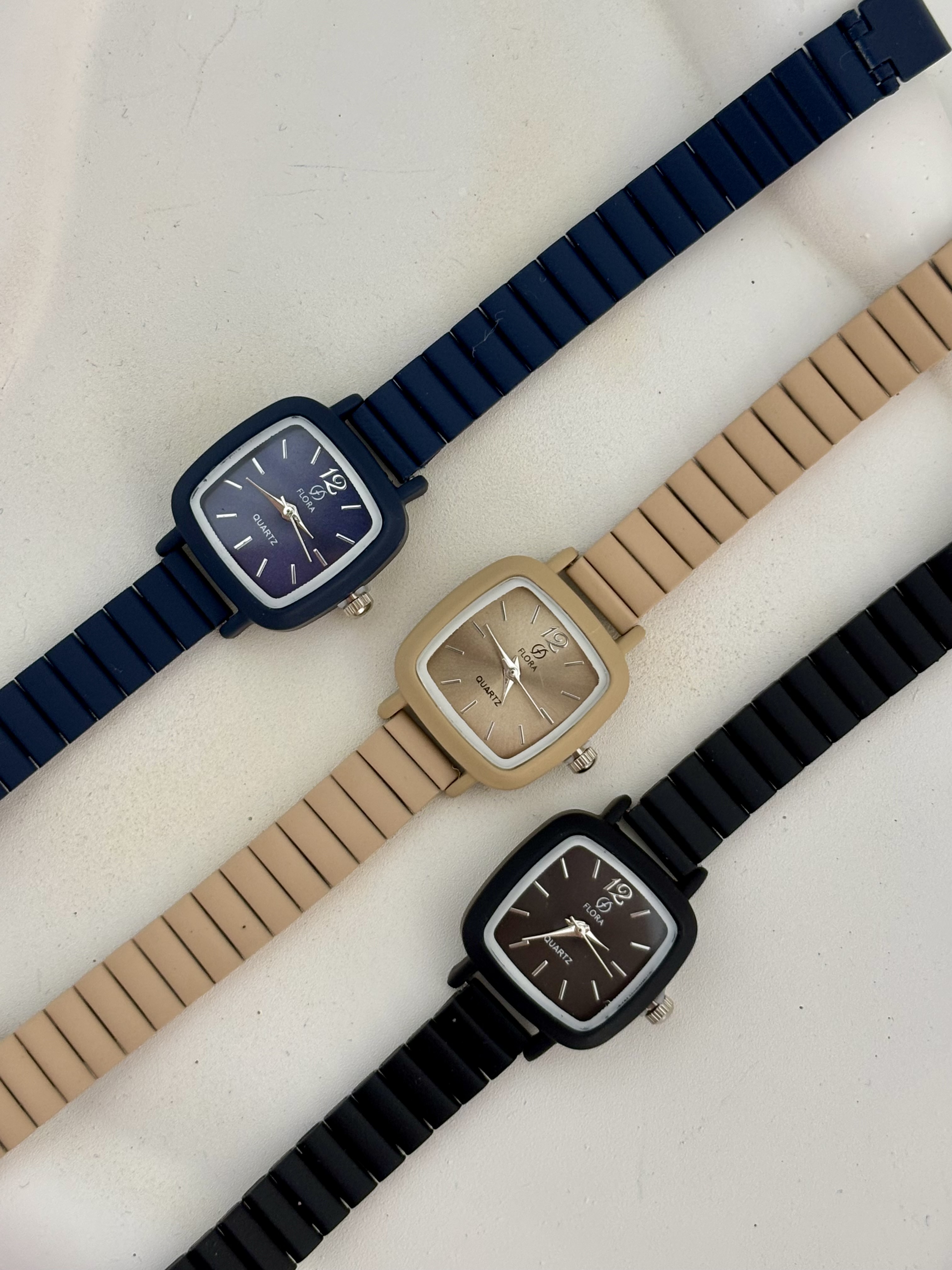 ساعت شمعی ( گواشی) دخترانه مدل جدید ✨صفحه مربع مینیمال ✨رنگ بدنه مات ✨بسیار با کیفیت و رنگ ثابت ✨بدون ایجاد حساسیت پوستی ✨قفل ریلی قابل تنظیم بصورت دلخواه( نیاز به کوتاهی بند ندارد)