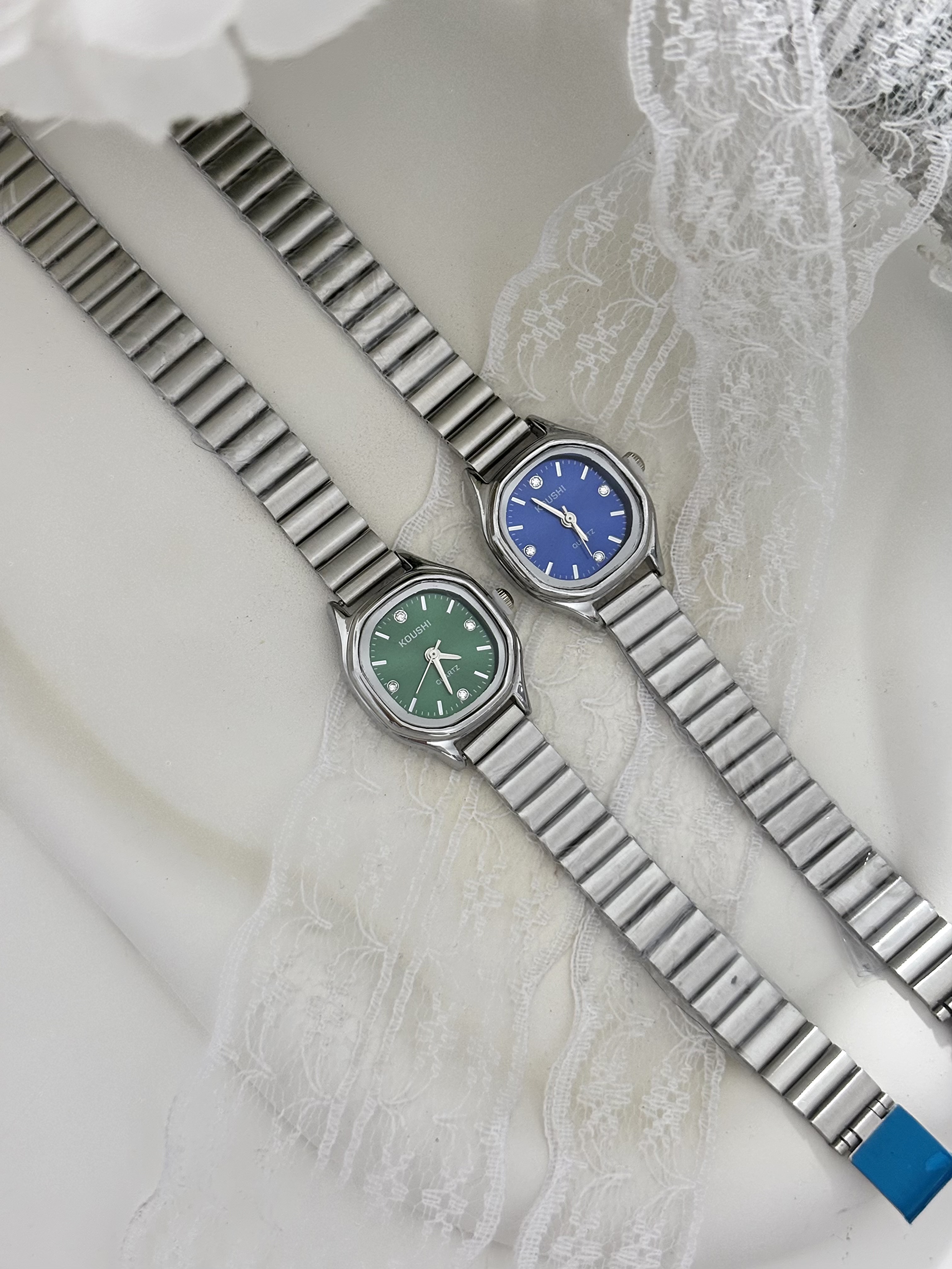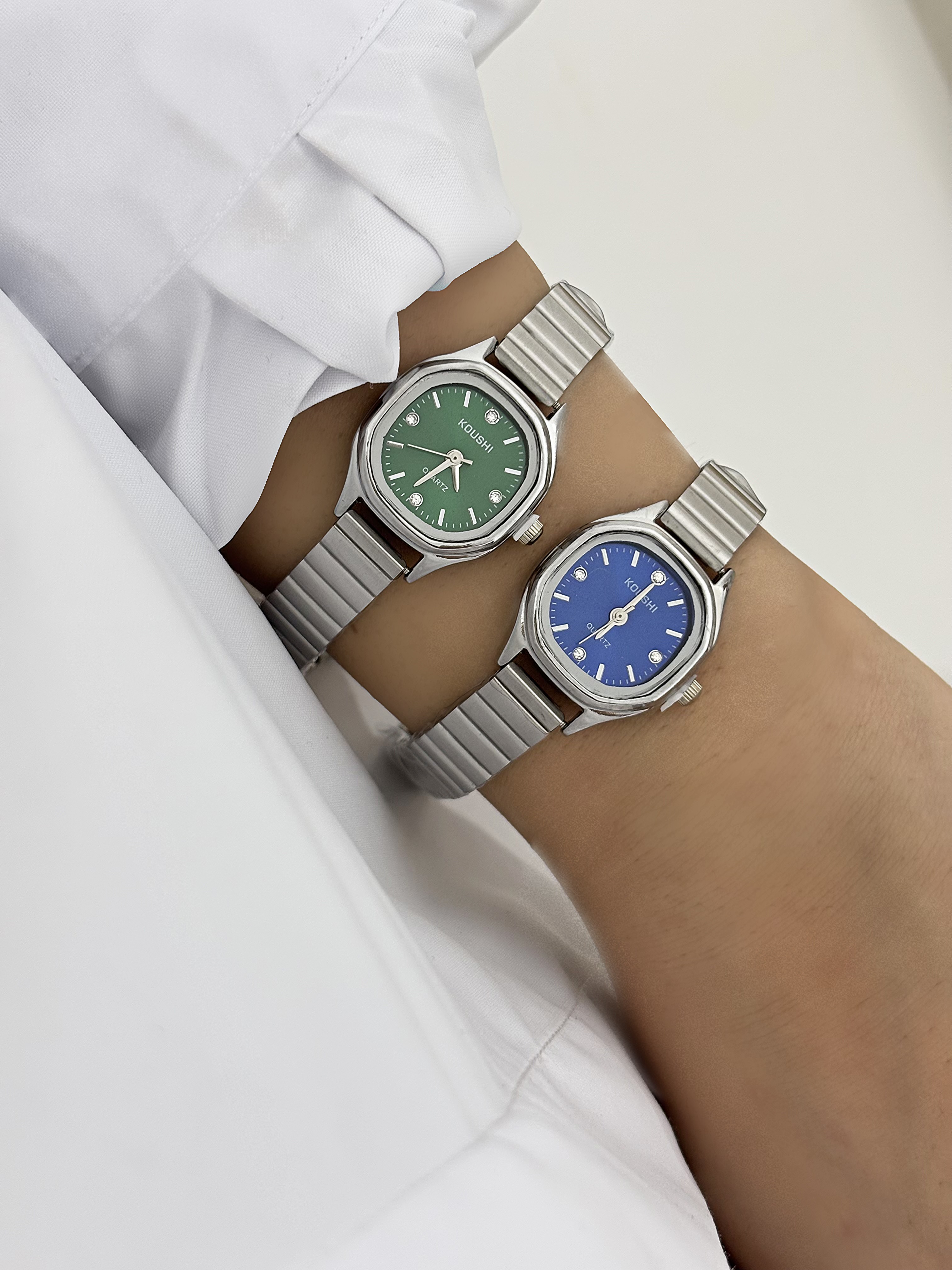 ✨ساعت زنانه سیلور از برند کوشی با بند کرکره ای و قفل ریلی، صفحه مینیمال مربع گوشه گرد ، و نگین کاری شده جزئی و از جدیدترین مدل های موجود در بازار است .