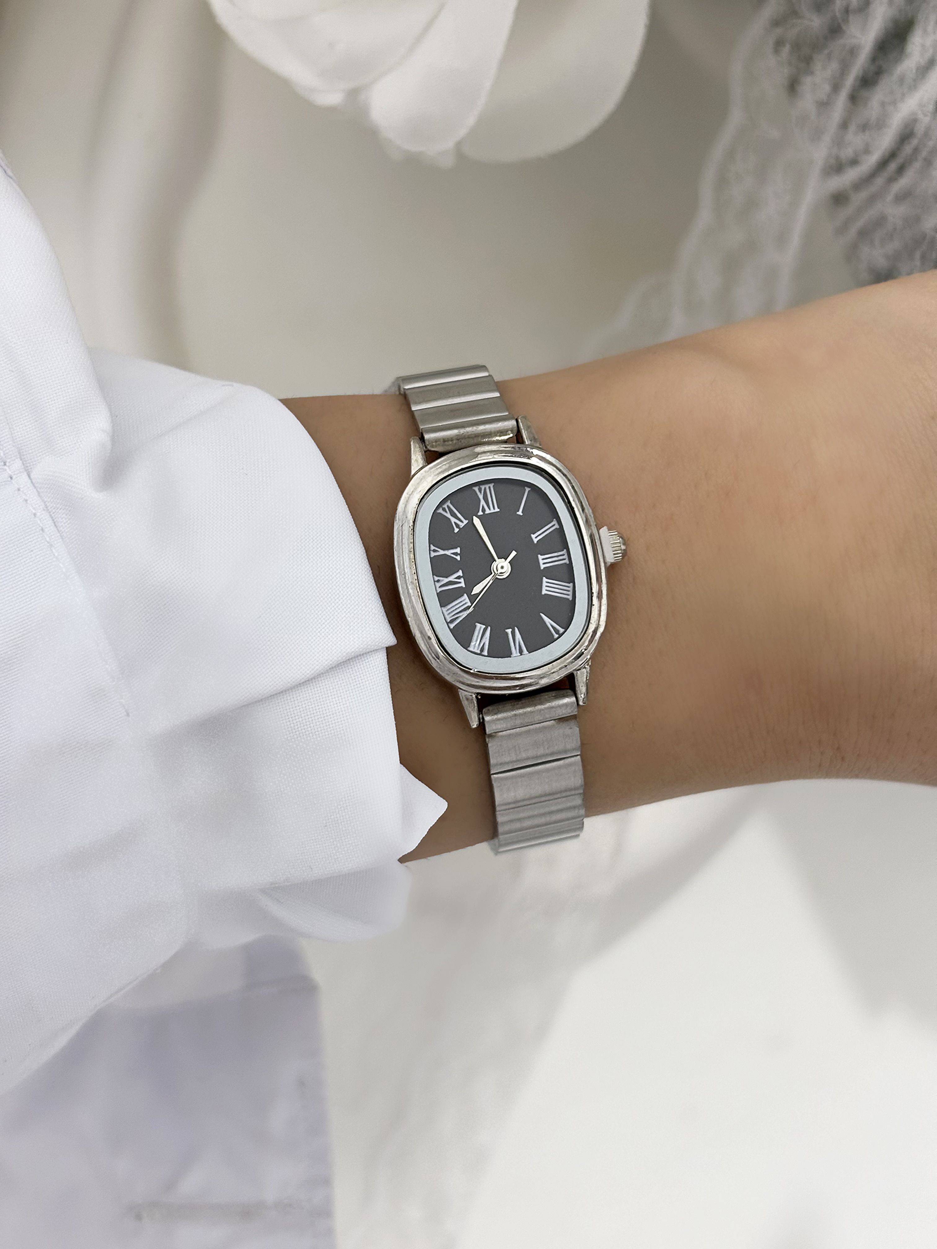 ✨ساعت زنانه سیلور صفحه بیضی مشکی با عددرومی ، بند کرکره ای و قفل ریلی، صفحه مینیمال بیضی ،و از جدیدترین مدل های موجود در بازار است .