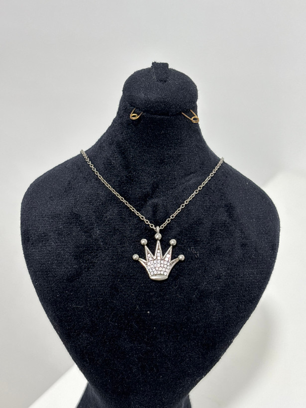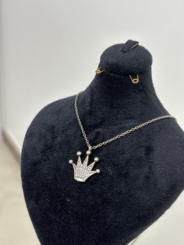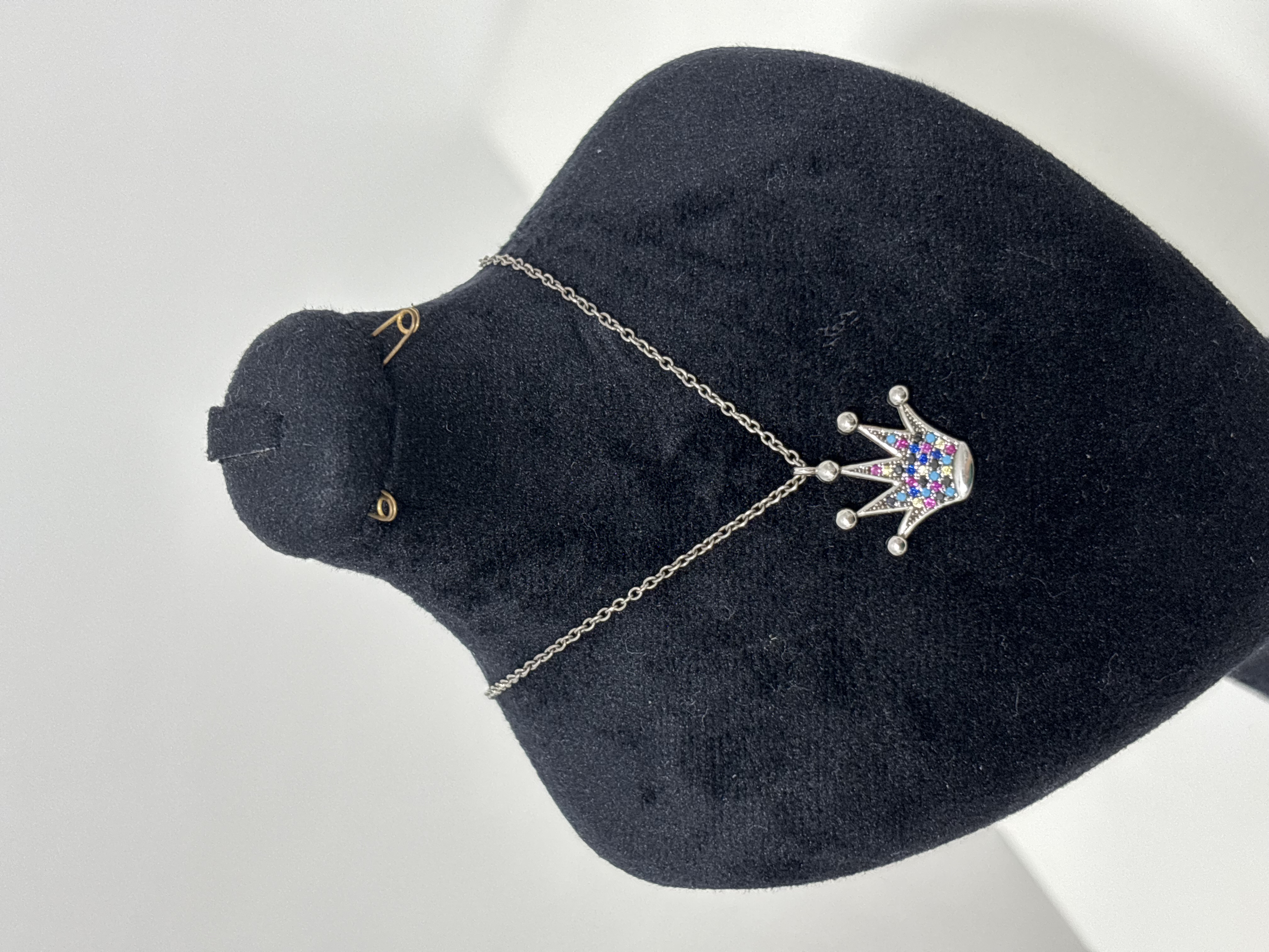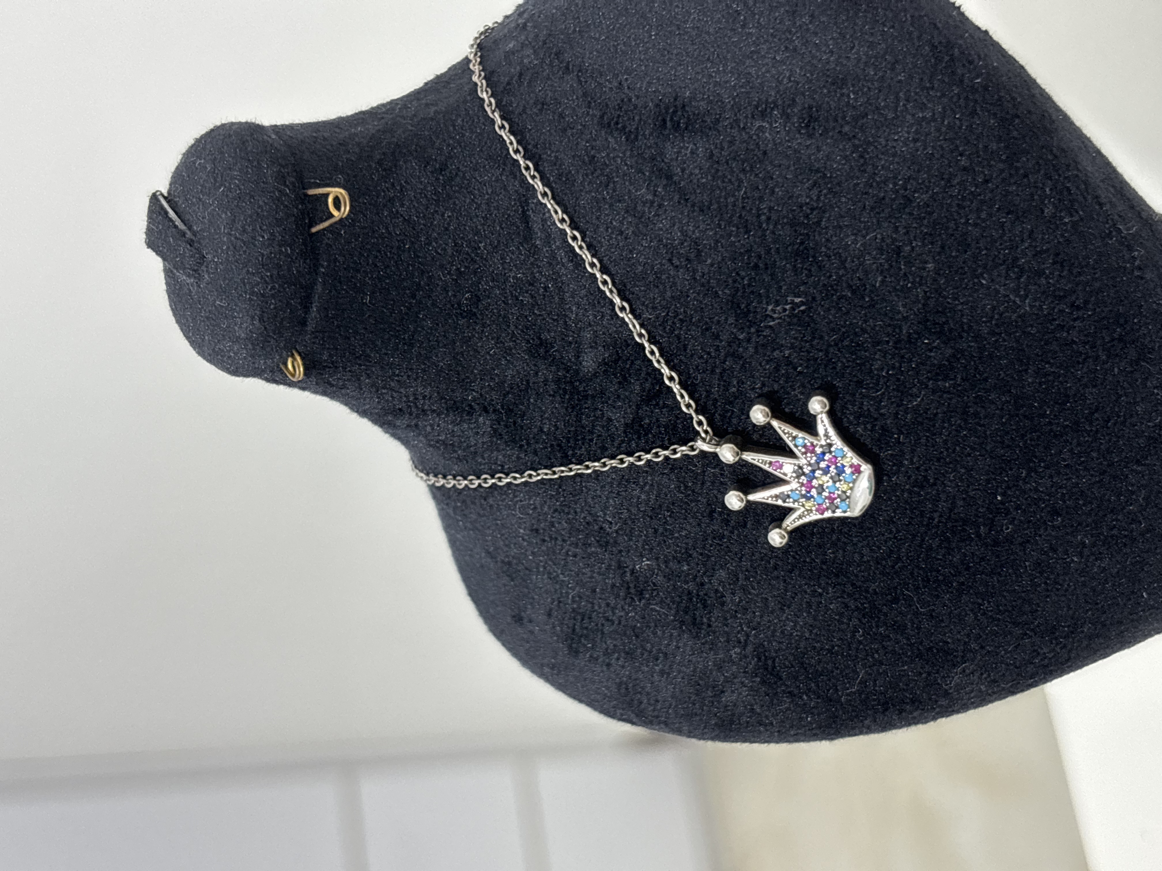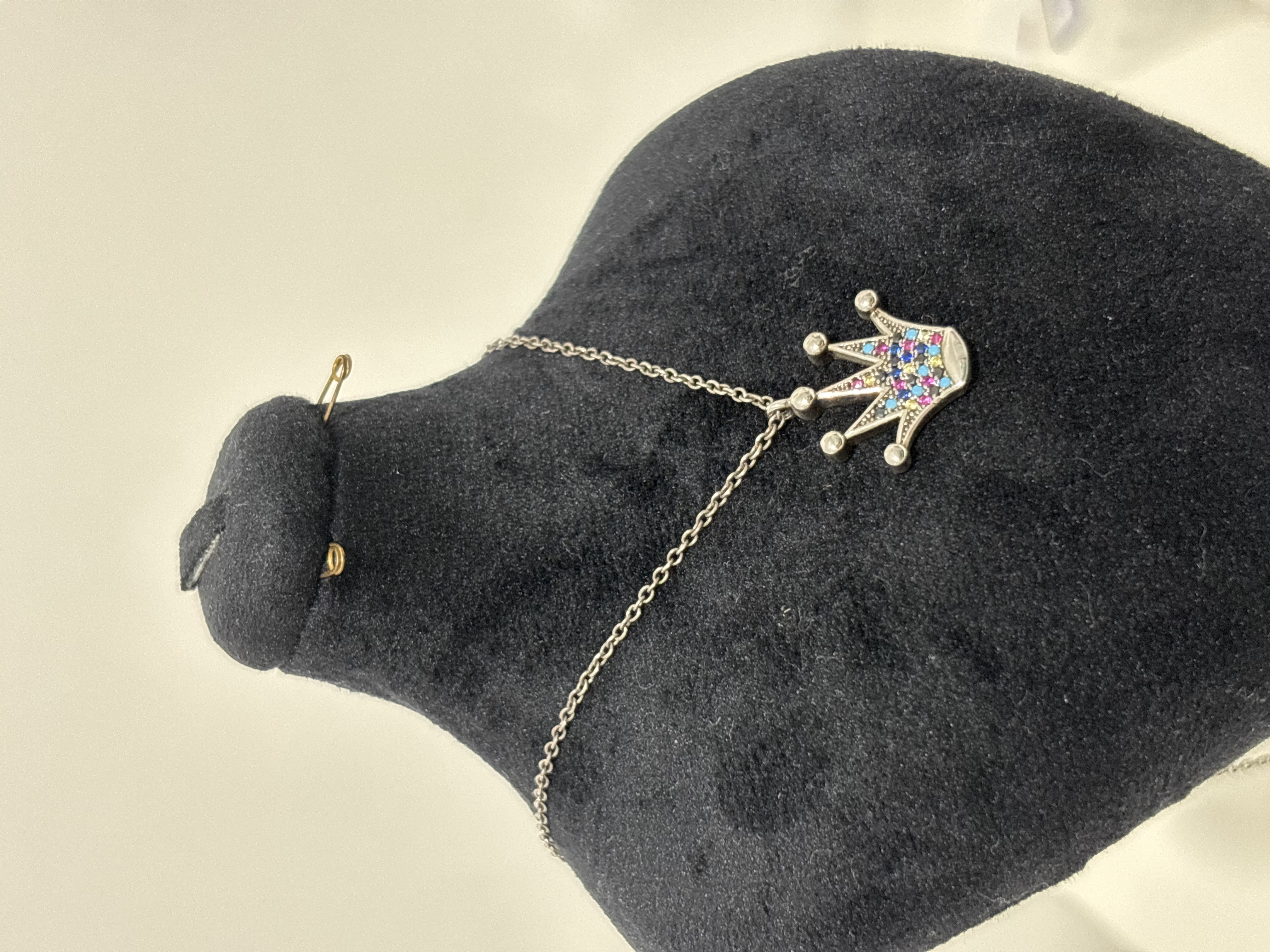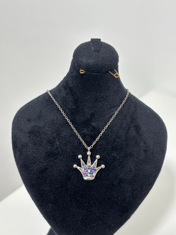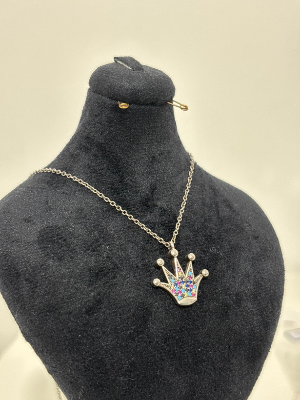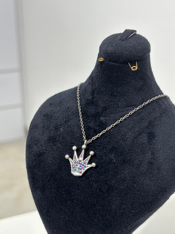 🪙گردنبند نقره زنانه با پلاک تاج نگین رنگی عیار ۹۲۵