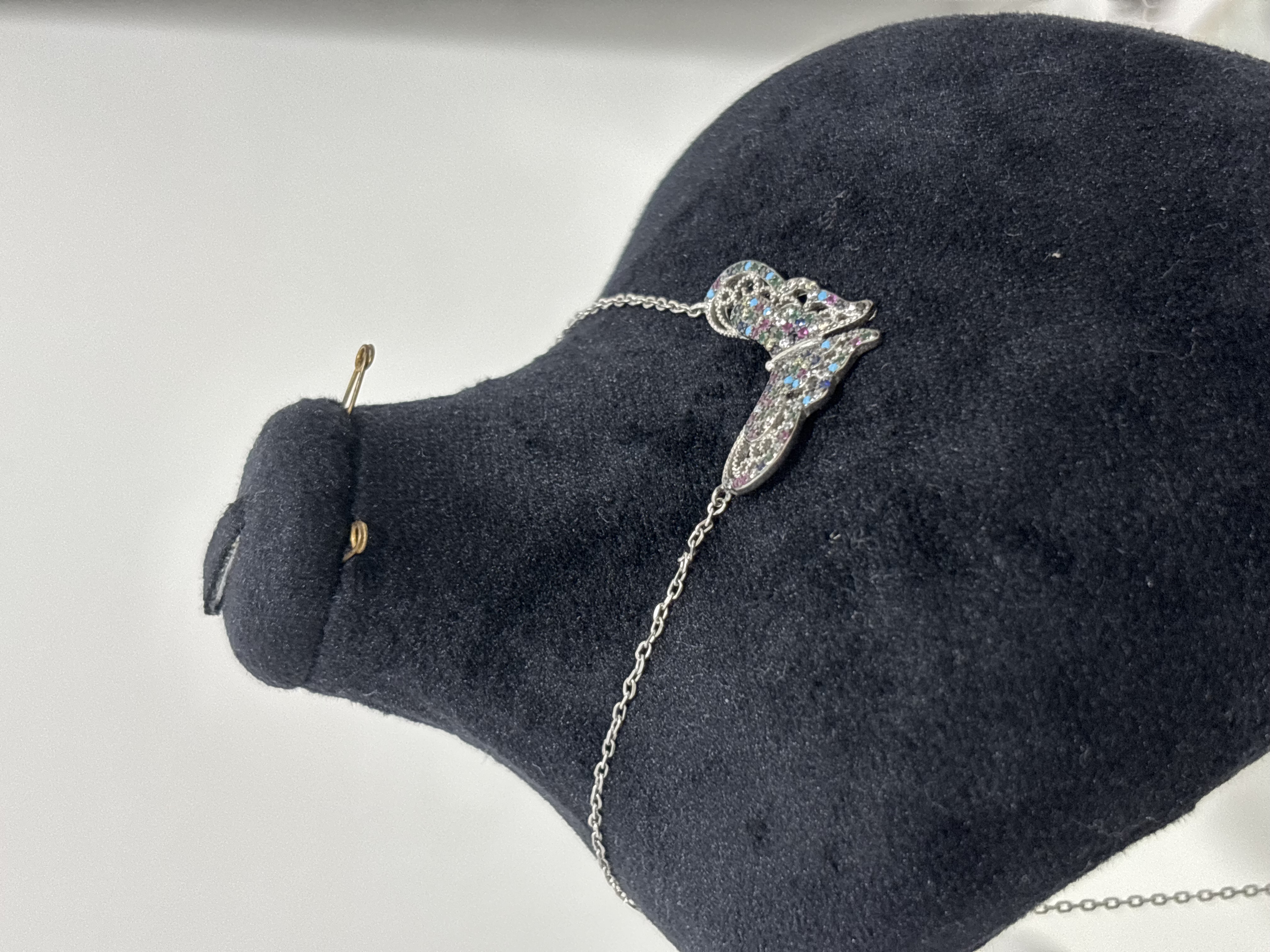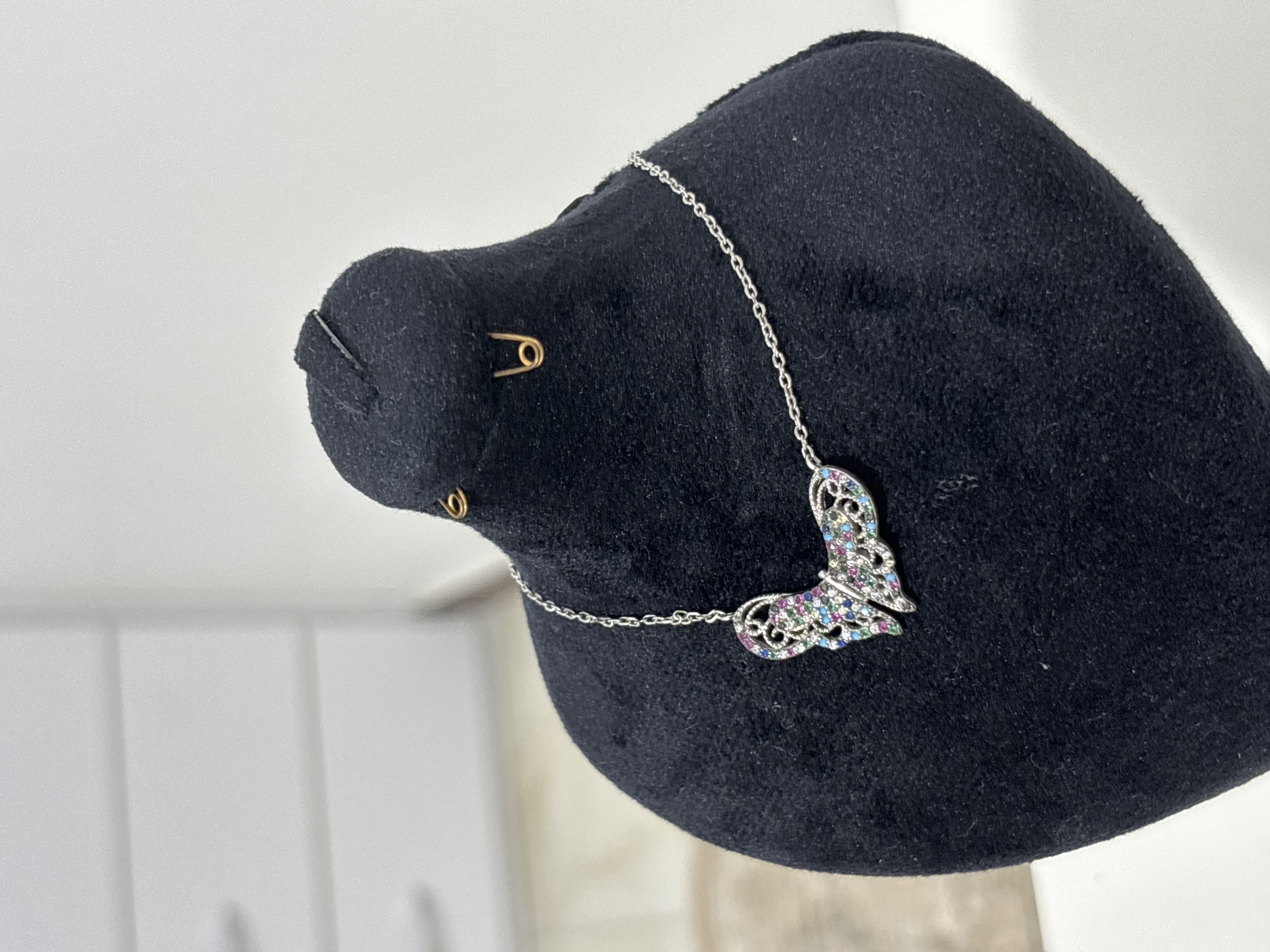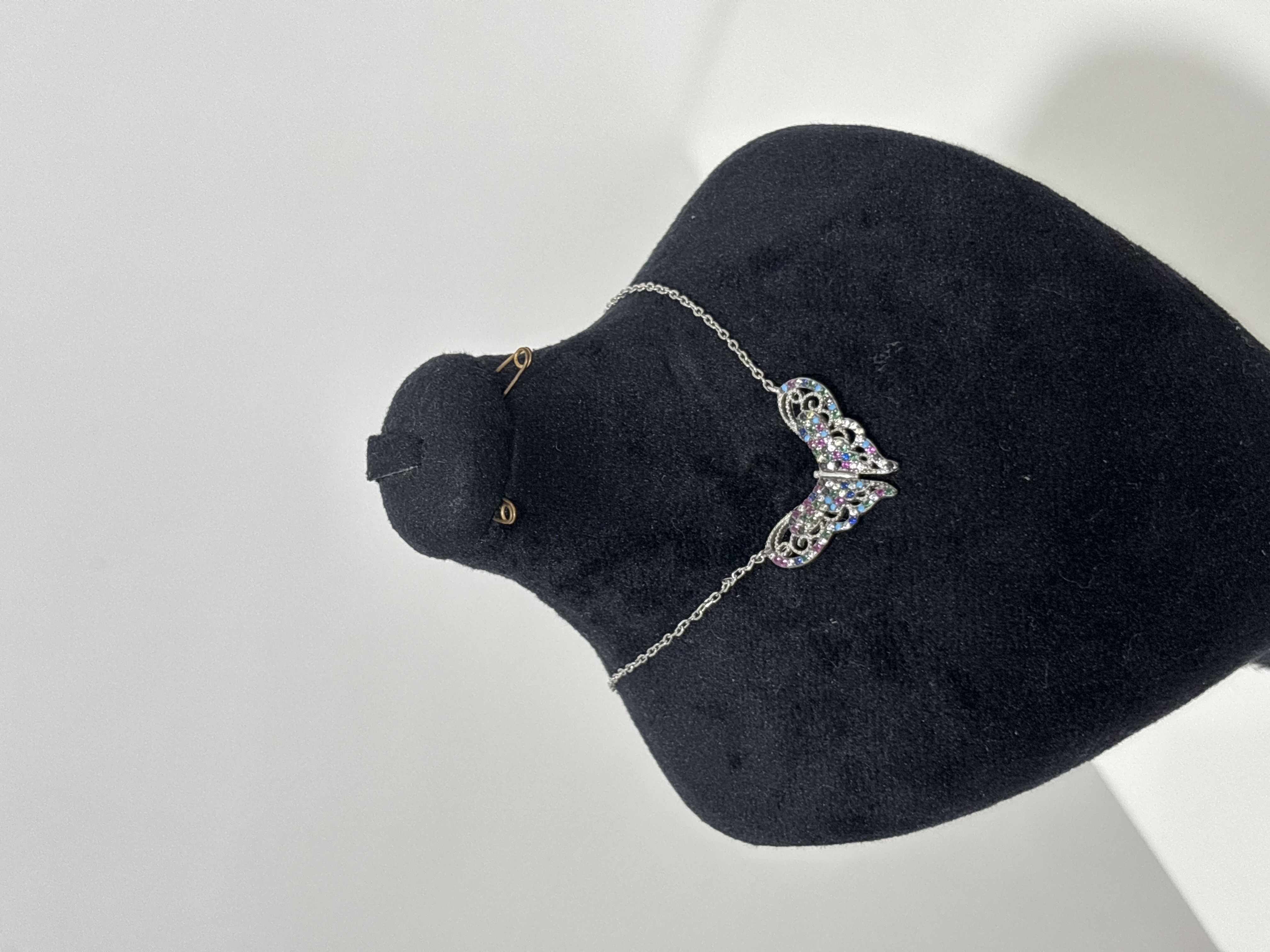 🪙گردنبند نقره زنانه با پلاک پروانه ای نگین رنگی عیار ۹۲۵