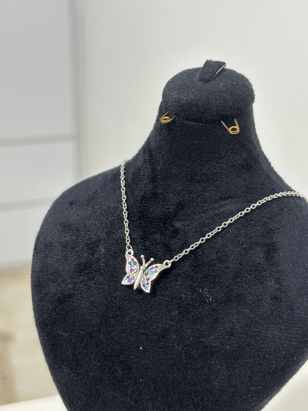 🪙گردنبند نقره زنانه با پلاک پروانه نگیندار عیار ۹۲۵