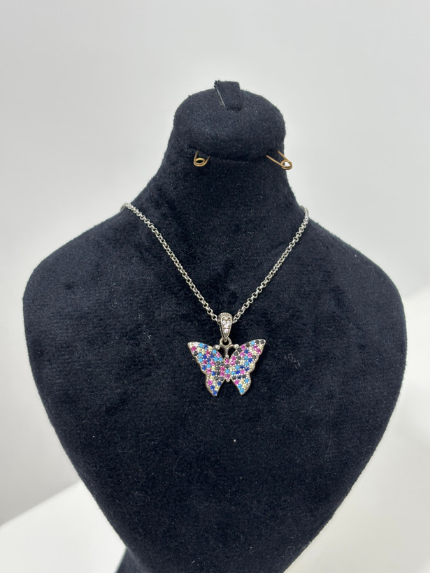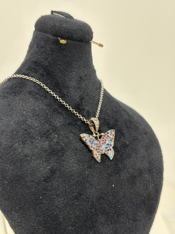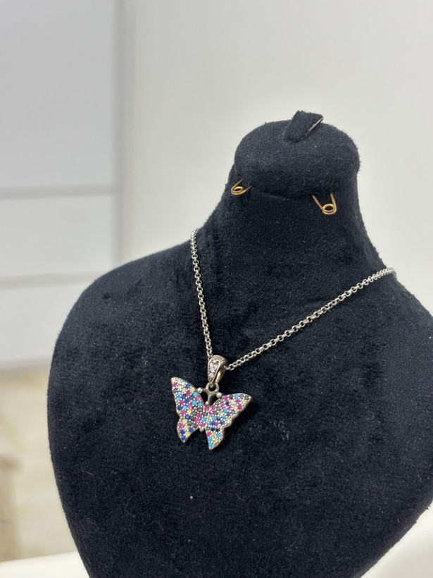 🪙گردنبند نقره زنانه با پلاک پروانه نگیندار عیار ۹۲۵
