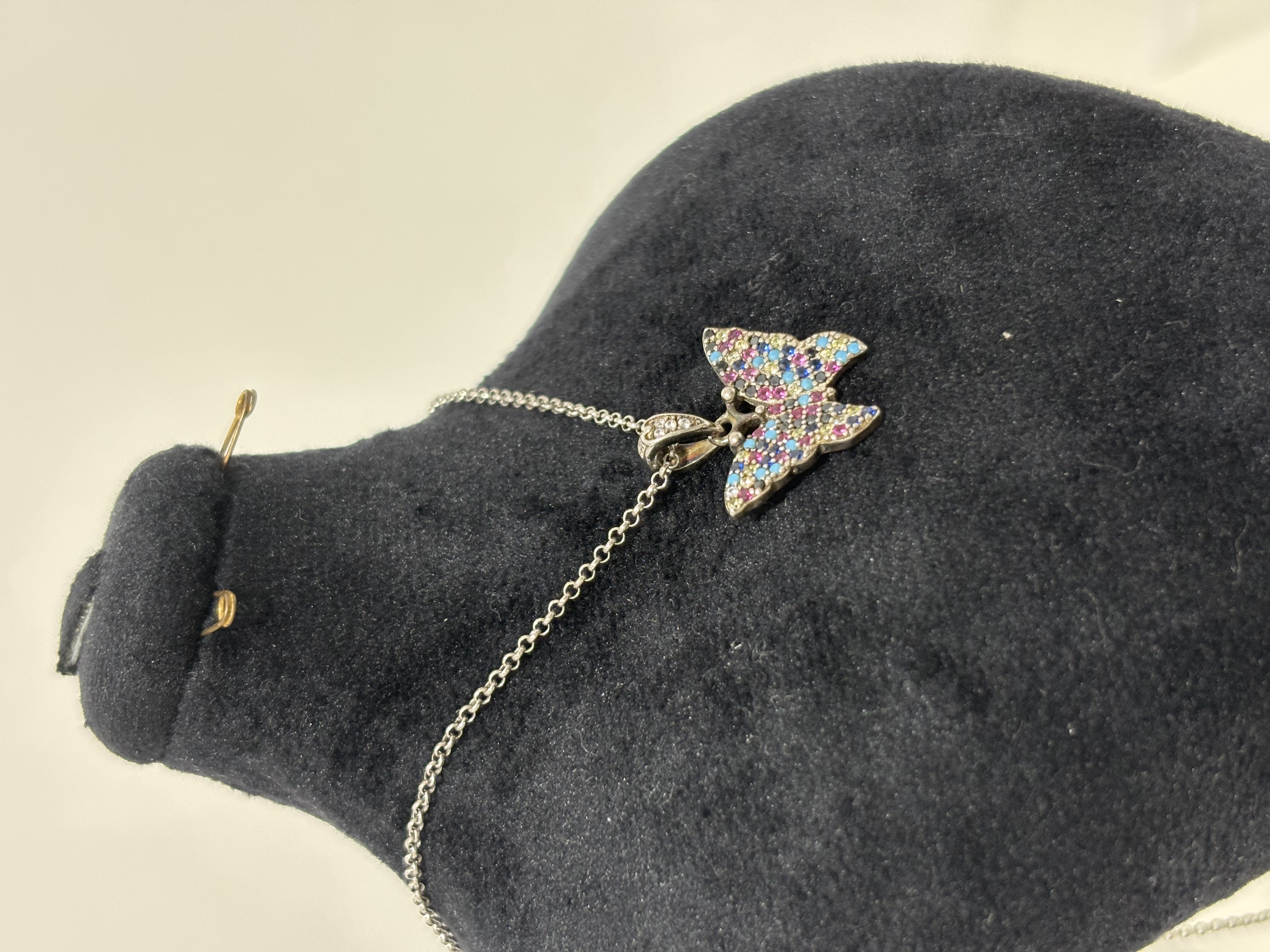🪙گردنبند نقره زنانه با پلاک پروانه نگیندار عیار ۹۲۵