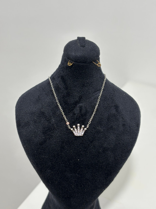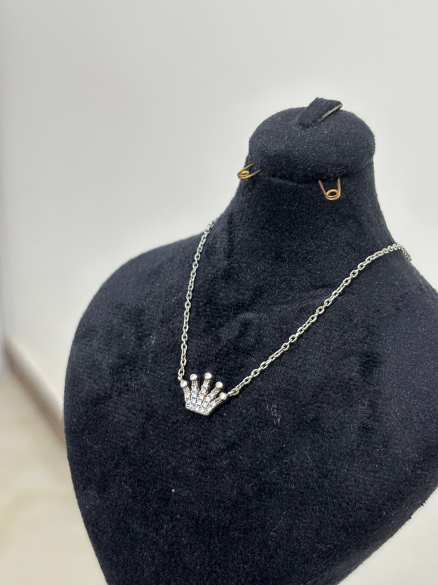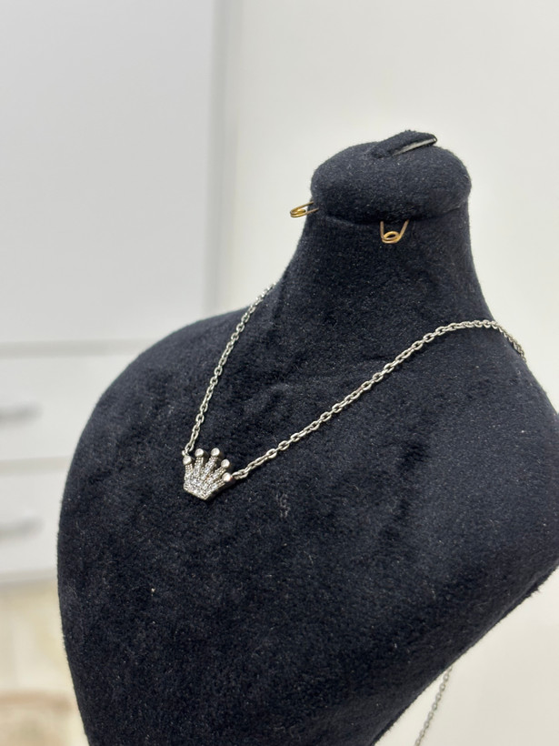 🪙گردنبند نقره زنانه با پلاک تاج نگیندار عیار ۹۲۵